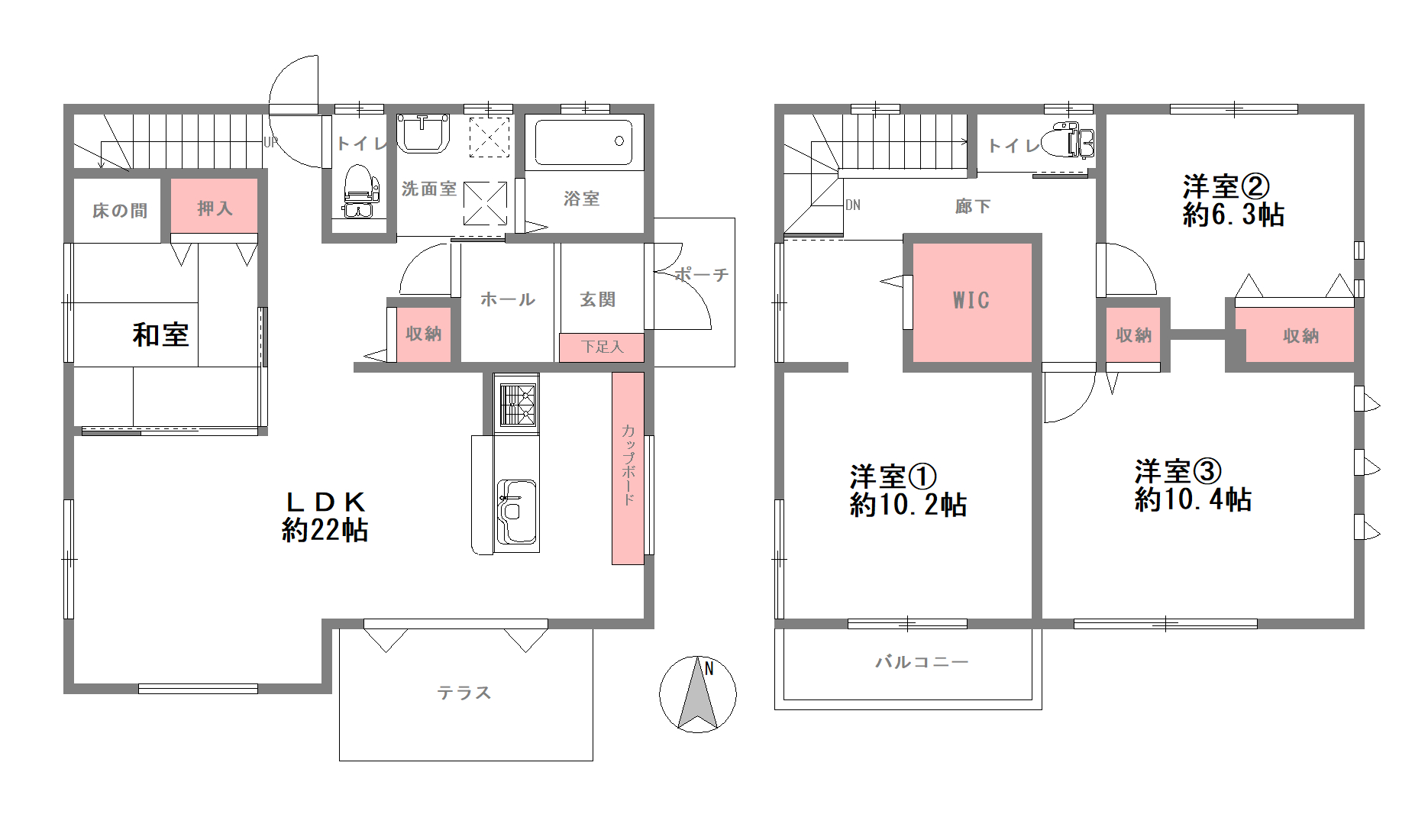 ★建物面積:122.55㎡(1階:62.93㎡ / 2階:59.62㎡)